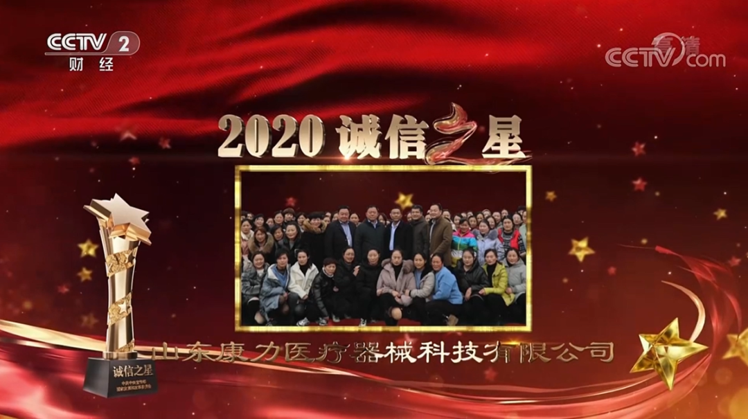 On the evening of January 31, the "integrity star" press conference jointly hosted by the Propaganda Department of the CPC Central Committee and the national development and Reform Commission was officially broadcast on the CCTV financial channel. Three collectives and nine individuals were grandly announced at the meeting. Shandong Kangli Medical Device Technology Co., Ltd. adheres to the enterprise spirit of "honesty and quality first", guarantees the supply of epidemic prevention materials regardless of cost, and makes outstanding contributions to the national epidemic prevention and control. It was awarded the honor of "star of integrity" in 2020.