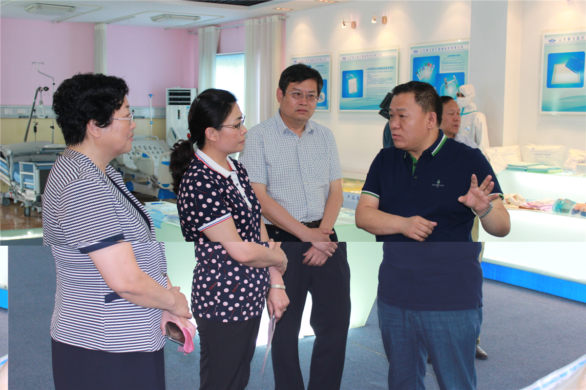 總經(jīng)理向邵局長一行介紹公司專利產(chǎn)品:一次性使用床墊(滑移墊)