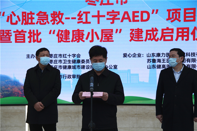 李全太副會長在講話中代表省紅十字會向棗莊市“心臟急救 紅十字AED”項目啟動暨首批“健康小屋”建成啟用表示熱烈祝賀,向給予紅十字人道公益事業(yè)大力支持的愛心企業(yè)和社會各界人士表示衷心的感謝!希望棗莊市紅十字會牢固樹立“以人民健康為中心”的發(fā)展思想,將AED項目做成系統(tǒng)性工程,真正讓“救命神器”發(fā)揮作用。