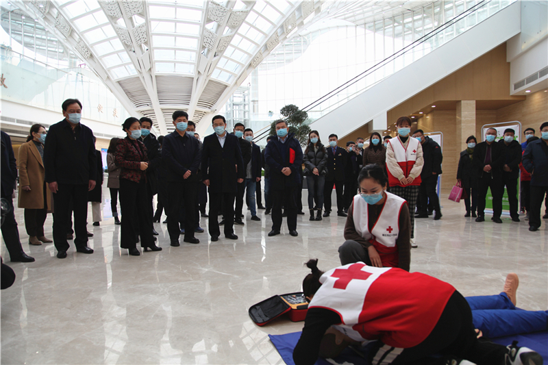 啟動儀式后,領(lǐng)導們參觀了棗莊市民中心健康驛站并觀摩了由紅十字志愿者組織開展的心肺復(fù)蘇急救技能培訓。