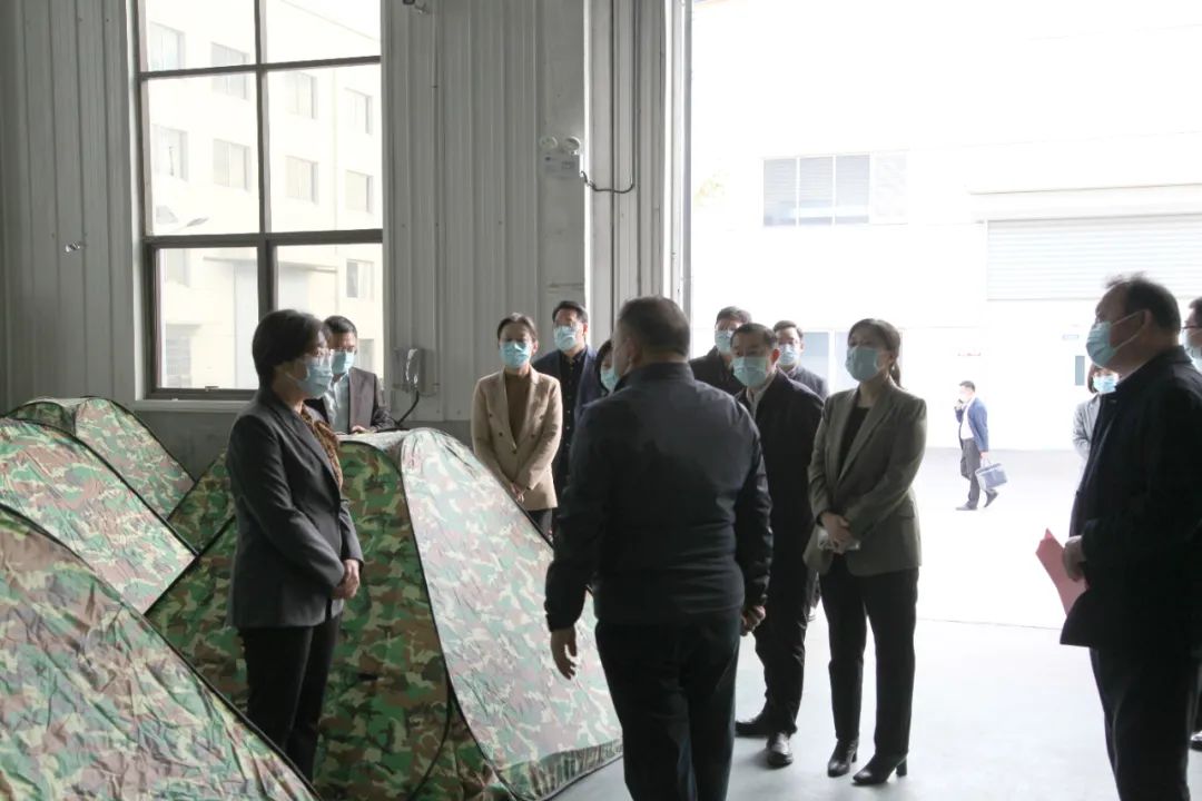 李妍一行深入公司生產(chǎn)一線,實地察看防疫物資生產(chǎn)凈化車間、醫(yī)用防護服、防護口罩等產(chǎn)品的生產(chǎn)情況,隨后來到員工休息區(qū),查看員工休息帳篷、被褥、洗漱用品等閉環(huán)生產(chǎn)生活物資的準備情況,并聽取相關(guān)情況匯報。